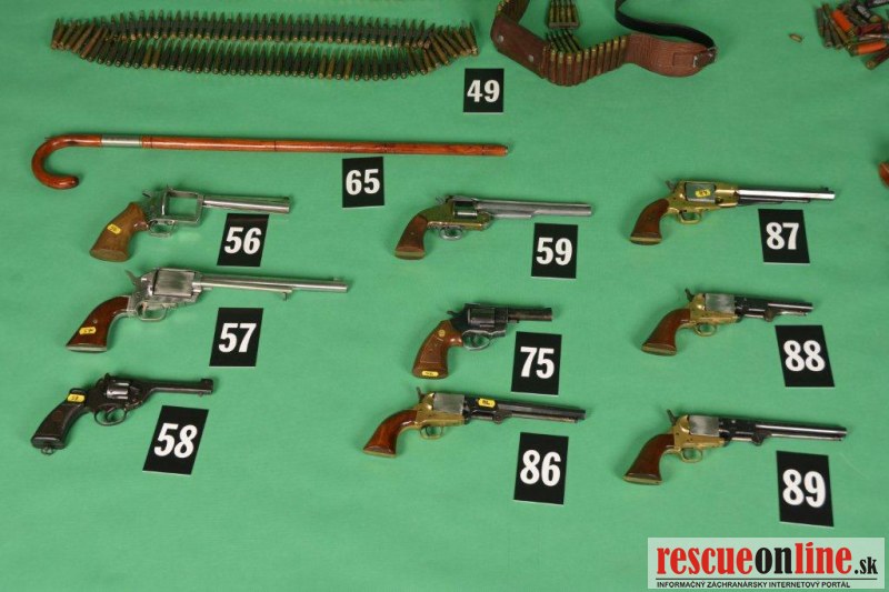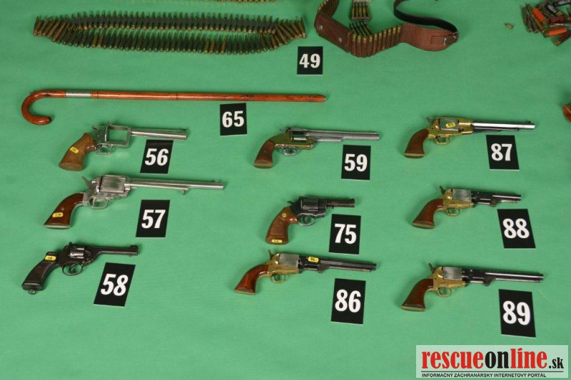 KRPZ Žilina |MM| V uplynulých dňoch vykonala žilinská polícia dve domové prehliadky v obci Višňové pri Žiline. Polícia disponovala operatívnymi informáciami o nelegálnej držbe zbraní. Zbrane, ktoré boli pri prehliadkach nájdené a zaistené, prekvapili aj samotných policajtov. Zaistených bolo najmenej 30 kusov dlhých strelných zbraní rôzneho typu a výroby, 5 kusov hromadne účinných strelných zbraní, t. j. samopalov rôzneho typu, najmenej 33 kusov krátkych strelných zbraní rôzneho typu a výroby, najmenej 4646 kusov nábojov rôzneho druhu a kalibru. Ďalej polícia zaistila 7 kusov munície zjavne podobnej granátu s telom zapaľovača, 13 kusov delostreleckej munície rôzneho kalibru, delostrelecké zapaľovače, viacero rôznych komponentov a súčastí na výrobu zbraní a munície, teda závery, hlavne, nábojnice, strely, strelný prach a iné presne neidentifikovateľné chemické látky a trhaviny a ďalší presne neidentifikovateľný pyrotechnický materiál ako sú iniciátori zápalu, zápalnice, výbušky a dymovničky. Všetky zaistené zbrane a strelivo budú zaslané na kriminalistickú expertízu.