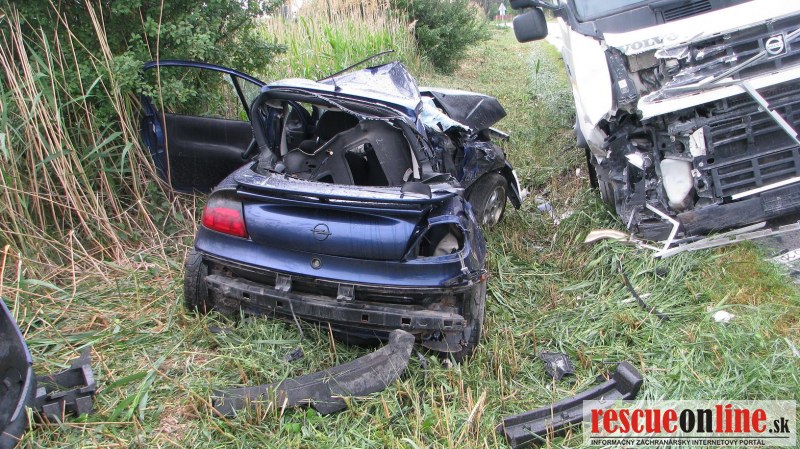 KRPZ Trnava |MM| Polícia vyšetruje dopravnú nehodu, ktorá sa stala dnes (6.5.), krátko pred šiestou hodinou, medzi obcami Veľké Úľany a Jánovce (okr. Galanta). 21 ročný vodič z Veľkých Úľan viedol osobné auto Opel v smere na Jánovce. V pravotočivej zákrute neprispôsobil rýchlosť jazdy poveternostným podmienkam a prešiel do protismeru, kde sa čelne zrazil s oproti idúcim kamiónom, ktorý viedol 64 ročný muž z Hrubej Borše (okr. Senec). Počas dopravnej nehody vodič osobného auta utrpel zranenia, ktorým na mieste podľahol. Alkohol u vodiča nákladného auta zistený nebol. To, či vodič osobného auta požil pred jazdou alkohol určí až súdna pitva.