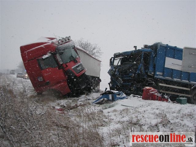 KRPZ Trnava |MM| Polícia vyšetruje dopravnú nehodu, ktorá sa stala 21. Decembra 2011, o pol dvanástej, na ceste č. II/499. 63 ročný vodič z Piešťan viedol nákladné auto Volvo smerom od Vrbového na Trebatice. V pravotočivej zákrute neprispôsobil rýchlosť jazdy, následok čoho prešiel do protismeru, kde sa čelne zrazil s protiidúcim nákladným autom Man, ktoré viedol 39 ročný muž z Piešťan. Obaja vodiči sa pri dopravnej nehode zranili ťažko. Spolujazdci z vozidla Volvo, 30 ročný muž z obce Pobedím (okr. Nové Mesto nad Váhom) a 40 ročný muž z obce Likavka (okr. Ružomberok) utrpeli ľahké zranenia. Alkohol u vodičov zistený nebol. Škoda na vozidlách vznikla 55.000,-€. Vyšetrovateľ z prečinu ublíženia na zdraví obvinil 63 ročného muža z Piešťan. V prípade dokázania viny mu za tento skutok hrozí trest odňatia slobody na jeden až päť rokov.