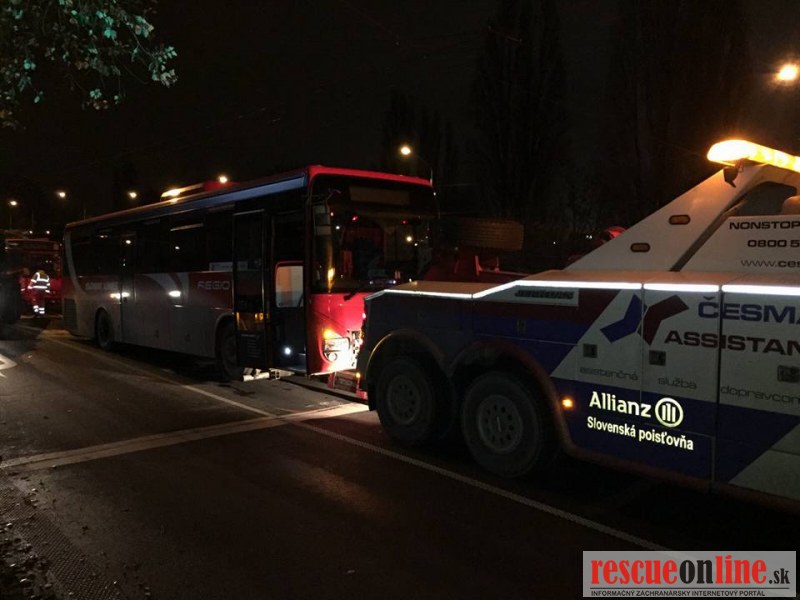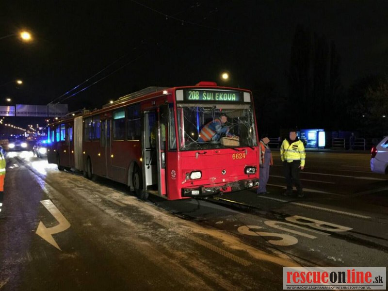 Odťahovka Jaslovský |MM| Včera vo večerných hodinách došlo na križovatke Prievozská × Bajkalská smer centrum k zrážke autobusu a trolejbusu. Vodič autobusu dobrzďoval na červenú. Zo zadu sa približoval trolejbus, ktorého vodič keď videl zhasnúť brzdové svetlá na autobuse a získal pocit, že autobus má zelenú a bude sa rozbiehať a došlok k ich zrážke.