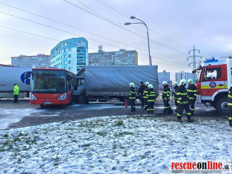 Zrážka autobusu s nákladným vozidlom v Bratislave
