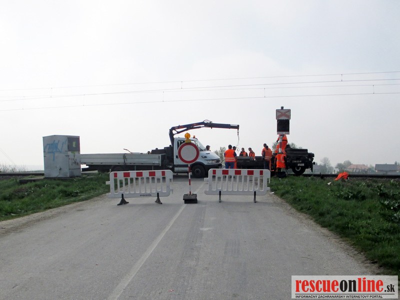 Zrážka cestného motorového vozidla s vlakom na opravovanom železničnom priecestí