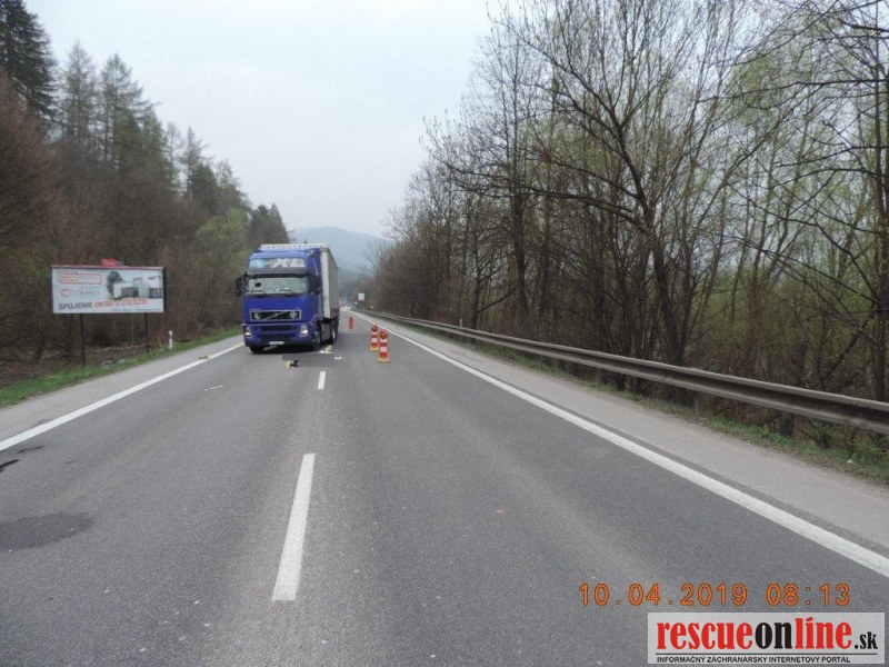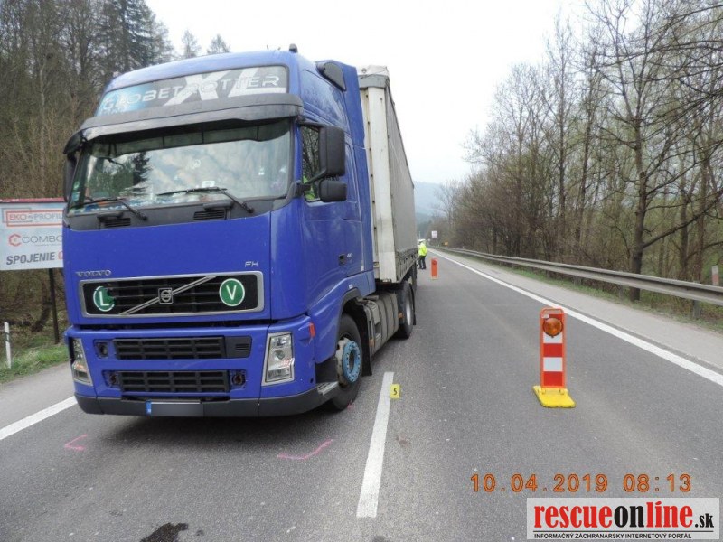 KRPZ Žilina |MM| V stredu 10. apríla 2019 pred siedmou hodinou rannou došlo na ceste I/11 v katastri obce Radoľa k stretu chodca s kamiónom. Podľa doposiaľ zistených informácií mal 30 ročný chodec, ktorý kráčal po ľavej krajnici v smere do Žiliny z doposiaľ nezistených príčin náhle vojsť do jazdnej dráhy kamióna, ktorý v opačnom smere jazdy viedol 60 ročný vodič. Vodič kamiónu na vzniknutú situáciu reagoval brzdením, avšak zrážke s chodcom nedokázal zabrániť. V dôsledku zrážky utrpel 30 ročný chodec ťažké zranenia, s ktorými bol prevezený do nemocnice. Požitie alkoholických nápojov u vodiča kamiónu zistené nebolo. Okolnosti dopravnej nehody sú predmetom vyšetrovania polície.