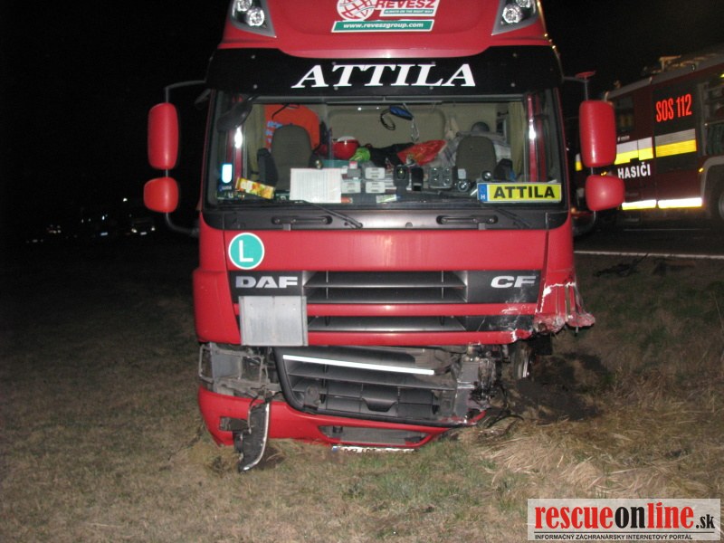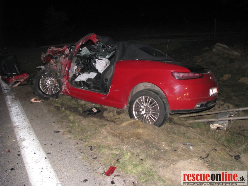 KRPZ Banská Bystrica |MM| K dopravnej nehode došlo dnes (20.3.) o 01,00 hodine na štátnej I/50 pri Čiernej Lúke. Podľa doterajšieho objasňovania, 32-ročný vodič z Nitrianskych Hrnčiaroviec viedol osobné motorové vozidlo Alfa Romeo Spider po suchej zjazdnej vozovke v rovnom úseku cesty smerom na Ožďany, pričom sa pravdepodobne plne nevenoval vedeniu vozidla a situácii v cestnej premávke, v dôsledku čoho vošiel s vozidlom do protismeru, kde došlo k zrážke s protiidúcim nákladným motorovým vozidlom DAF, ktoré viedol 41-ročný vodič z Maďarskej republiky. Obidve vozidlá po zrážke skončili v priekope mimo cestu. Počas dokumentovania dopravnej nehody bolo potrebné aj dočasné uzavretie štátnej cesty I/50 a doprava bola odklonená asi po dobu troch hodín cez okolité obce Ožďany, Hrnčiarska Ves a Hrachovo. Pri dopravnej nehode došlo podľa predbežných vyjadrení lekárov k ťažkým, veľmi vážnym zraneniam 32-ročného vodiča osobného motorového vozidla a tiež k ľahkým zraneniam vodiča kamiónu. Celková škoda na vozidlách bola vyčíslená na približne 15-tisíc eur. Dopravná nehoda je v štádiu vyšetrovania.