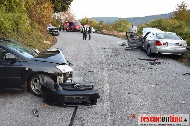 Polícia v Žiari nad Hronom objasňuje dopravnú nehodu 3 osobných vozidiel. 46-ročný vodič vozidla Toyota Corolla z okresu Levie, ktorý jazdil v smere od obce Veľké Pole na obec Horná Ves, pri prechádzaní zákrutou prešiel časťou vozidla do protismeru. V tom čase v opačnom smere jazdy išlo vozidlo Lexus, ktoré viedol 36-ročný vodič z Bratislavy, pričom došlo k zrážke ľavými prednými časťami. Za vozidlom Toyota išlo vozidlo Alfa Romeo, ktorého 22-ročný vodič zo Zvolena pre krátku vzdialenosť už nedokázal zastaviť a narazil do vozidla Toyota. Pri dopravnej nehode sa dvaja vodiči a dvaja spolujazdci ľahko zranili. Pravdepodobnou príčinou tejto nehody bolo nesprávne vyhýbanie sa protiidúcich vozidiel. Na mieste bol aj znalec z odboru cestnej dopravy a presná príčina ako aj miera zavinenia dopravnej nehody je v štádiu objasňovania.