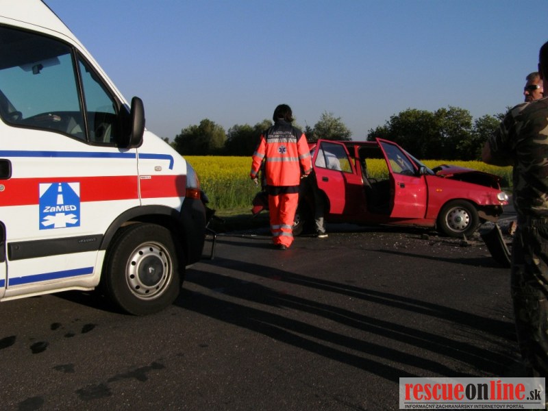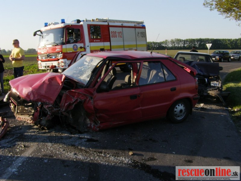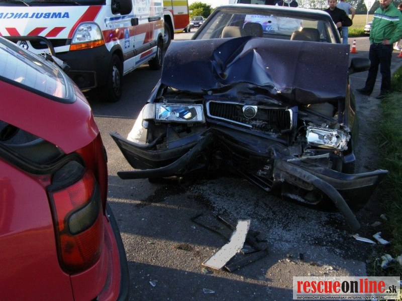 KR HaZZ Trnava | MM | Na operačnom stredisku OR HaZZ v Dunajskej Strede bola v sobotu 7. mája 2011 o 18:20 hod. prijatá správa o dopravnej nehode medzi obcami Blatná na Ostrove a Šulany. Operačný dôstojník na miesto nehody vyslal jednotku z hasičskej stanice Šamorín, štyria príslušníci HaZZ s technikou MB Atego. Jednotka po príchode na miesto udalosti zistila, že účastníci dopravnej nehody sa nachádzali mimo vozidiel, z toho troch ošetrovala ZZS. Na mieste nehody sa zrazili tri motorové vozidlá, Škoda Felícia, ktorého vodička bola ošetrená na mieste a odvezená do nemocnice do Dunajskej Stredy, spolu spolujazdcami /muž a žena/. Ďalšími motorovými vozidlami bola ďalšia Škoda Felícia a Škoda Fabia, ktorá sa nachádzala mimo vozovky. Vozidlá boli zaistené proti vzniku požiaru odpojením akumulátorov. Na likvidáciu prevádzkových kvapalín použili sorbčnú látku. Po naložení havarovaných automobilov na vozidlo odťahovej služby bola vozovka očistená od segmentov poškodených automobilov sa jednotka o 20:58 hod. vrátila na svoju základňu.