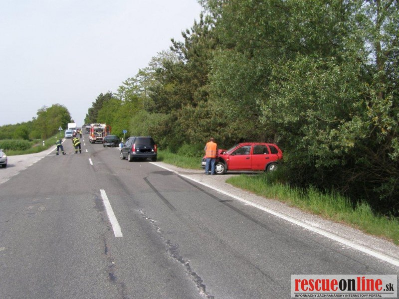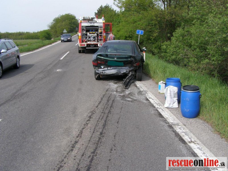 KR HaZZ Trnava | MM | Na operačné stredisko OR HaZZ v Senici bola vo štvrtok 12. mája 2011 o 15:06 hod. nahlásená dopravná nehoda s únikom prevádzkových kvapalín na št. ceste I/2 za mestom Kúty smerom na Holíč pri nadjazde pri obci Brodské. Na miesto nehody bola vyslaná jednotka HaZZ z hasičskej stanice Kúty, traja príslušníci s technikou MB-Vario. Po príjazde na miesto ohlásenej udalosti bolo prieskumom zistené, že sa stala dopravná nehoda troch motorových vozidiel, Renault 19, Mazda Premacy a Opel Corsa, z ktorých vytekali prevádzkové kvapaliny. Po príjazde jednotky HaZZ sa v automobiloch nenachádzali žiadne osoby a na mieste boli prítomní príslušníci PZ SR. Vozidla sa nachádzali na kolesách na komunikácii. Premávka bola obmedzená do jedného jazdného pruhu a bola riadená kyvadlovým spôsobom políciou. K zraneniu osôb neprišlo. Z vozidla Renault 19 unikala nafta z poškodenej palivovej nádrže. Naftu príslušníci HaZZ zachytávali do pripravenej nádoby a z vozovky bola odstránená pomocou sorbentu. Z vozidla Mazda Premacy unikol na vozovku motorový olej, ktorý bol tiež odstránený z vozovky pomocou sorbentu. Z tretieho vozidla Opel Corsa vytiekla na vozovku chladiaca kvapalina. Na vozidlách boli vykonane protipožiarne opatrenia odpojením akumulátorov. Na miesto dopravnej nehody sa dostavili vozidla odťahovej služby, ktoré si zabezpečili majitelia. Vozidlá Opel a Renault boli za asistencie príslušníkov HaZZ naložené na odťahové vozidlá a vozidlo Mazda si majiteľ odtiahol na krajnicu tak, aby nebránilo v plynulosti cestnej premávky. Po ukončení zásahu sa jednotka HaZZ o 16:24 hod. vrátila na základňu.