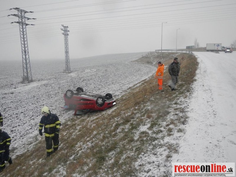stručný popis udalosti: dopravná nehoda osobného motorového vozidla značky Citroen C15D (prevráteného v priekope) – jedna zranená osoba, bez úniku prevádzkových kvapalín